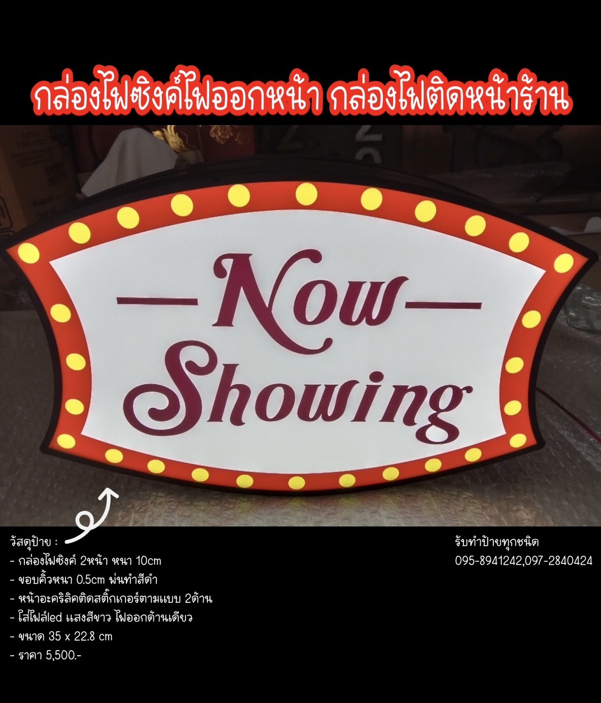 กล่องไฟซิงค์2หน้า กล่องไฟติดหน้าร้าน ขนาด 22.8 x 35 cm